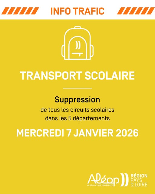 Les transports scolaires Aléop sont annulés aujourd’hui, mardi 6 janvier et demain, mercredi 7 janvier, dans l’ensemble des cinq départements de la région Pays de la Loire. La situation météo restera en effet contrastée, les conditions de circulation sur le réseau secondaire ne sont pas garanties, même dans les secteurs où un redoux est annoncé.